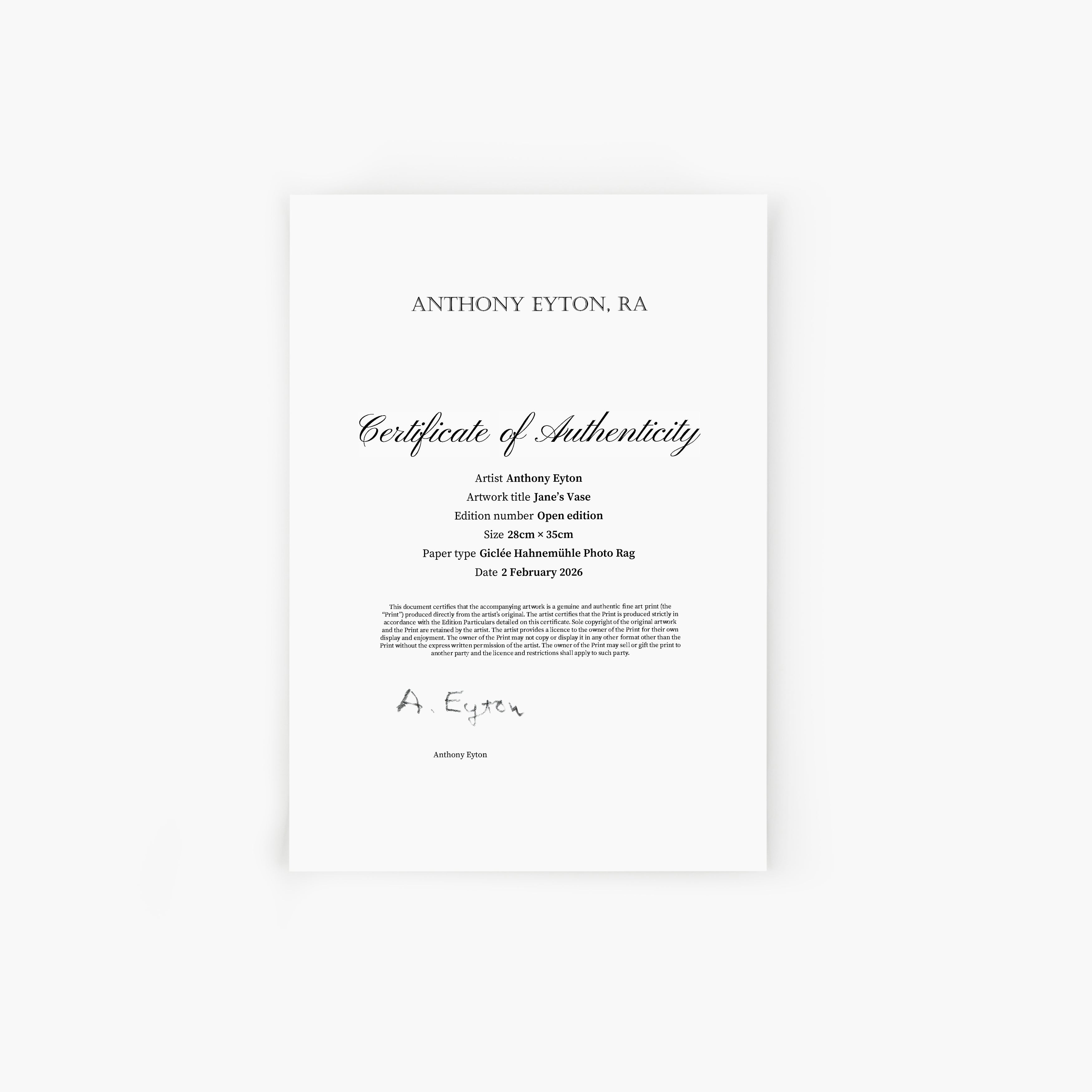 - Presented on acid-free, archival German Etching Giclée paper from Hahnemühle